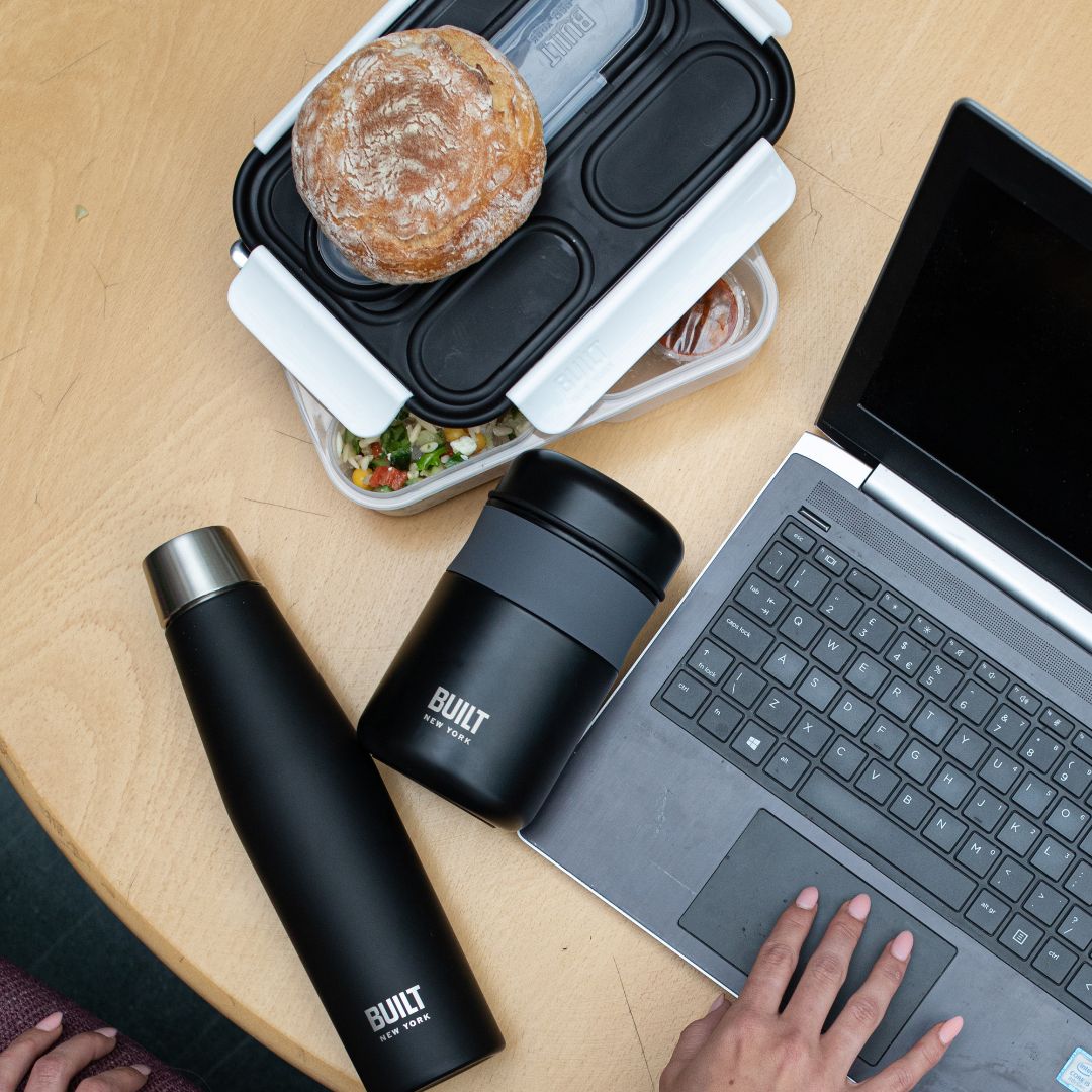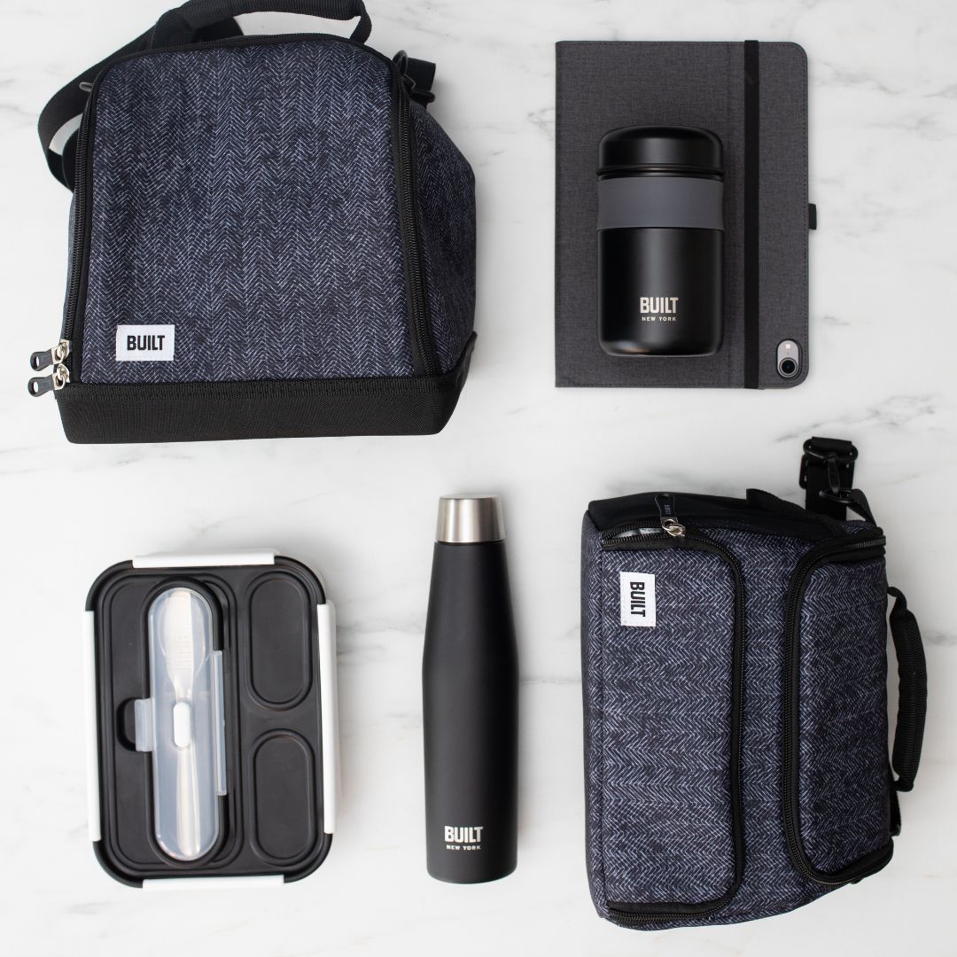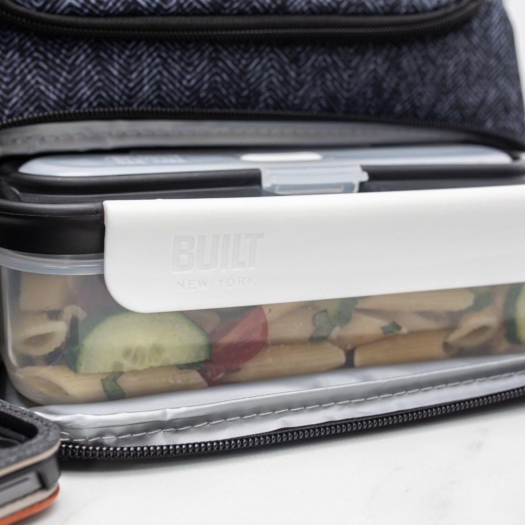 La Bento Box de Built es un juego todo en uno, funcional para el almuerzo. Incluye un recipiente para el almuerzo con un compartimento para utensilios y cubiertos (sin filos).
