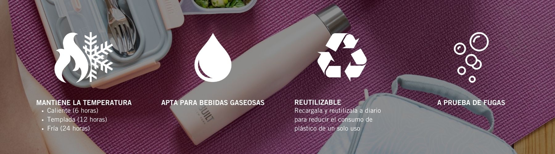DISEÑO DE DOBLE PARED: mantiene la temperatura durante más tiempo - caliente (seis horas), templada (12 horas) o fría (24 horas)
